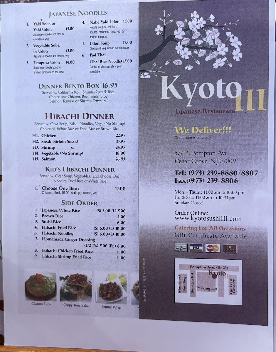 Welcome to Kyoto Sushi III, a hidden gem nestled in Cedar Grove, NJ. This charming sushi spot has captured the hearts of locals with its diverse and delicious offerings. The menu features an array of rolls, including the popular Jade Roll and Tsunami Roll, which are celebrated for their freshness and unique flavors. Reviewers rave about the Sashimi Platter and Unagi (eel), making it a must-try for sushi enthusiasts.